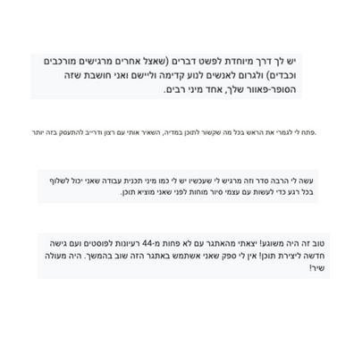 ואולי הסטורי הבא שלך יהיה על התובנות מהפגישה שלנו :)